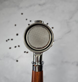 : پرتافیلتر بدون ته، که به آن پرتافیلتر naked نیز گفته میشود، یک نوع خاص از پرتافیلتر است که در آن قسمت تحتانی (ته) حذف شده تا جریان اسپرسو به طور مستقیم و بدون هیچ مانعی از قهوه آسیاب شده خارج شود. این نوع پرتافیلتر امکان مشاهده مستقیم اکسترکشن اسپرسو را فراهم میآورد و به باریستاها این امکان را میدهد تا کیفیت و یکنواختی استخراج را بهتر ارزیابی کنند. استفاده از پرتافیلتر بدون ته نیاز به دقت بیشتری در آمادهسازی قهوه دارد، زیرا هر گونه ناهمواری در توزیع یا فشردن قهوه میتواند منجر به استخراج نامناسب و چکه کردن شود. با این حال، هنگامی که به درستی استفاده شود، پرتافیلتر بدون ته میتواند به تولید اسپرسویی با طعم عالی و یک کرمای غنی کمک کند، زیرا اجازه میدهد آب به طور مساوی از تمام قسمتهای قهوه عبور کند و حداکثر طعم را استخراج نماید.